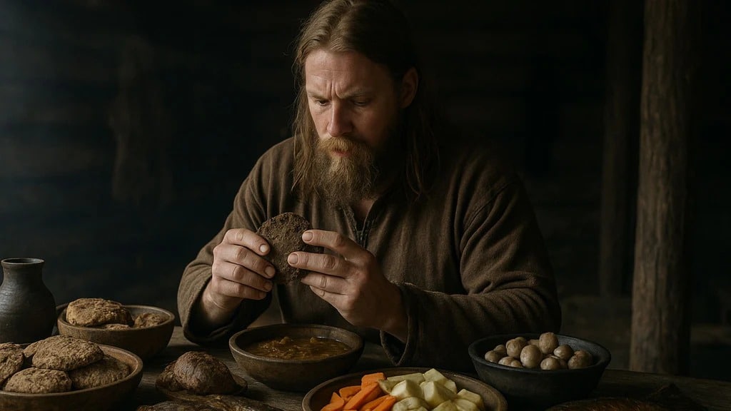 Viking meals were hearty, made from what they could farm, fish, or forage. Bread, porridge, and soups were daily staples, while meat — especially pork and fish — was enjoyed when available. Fermented drinks like mead and ale accompanied many meals, especially during feasts.